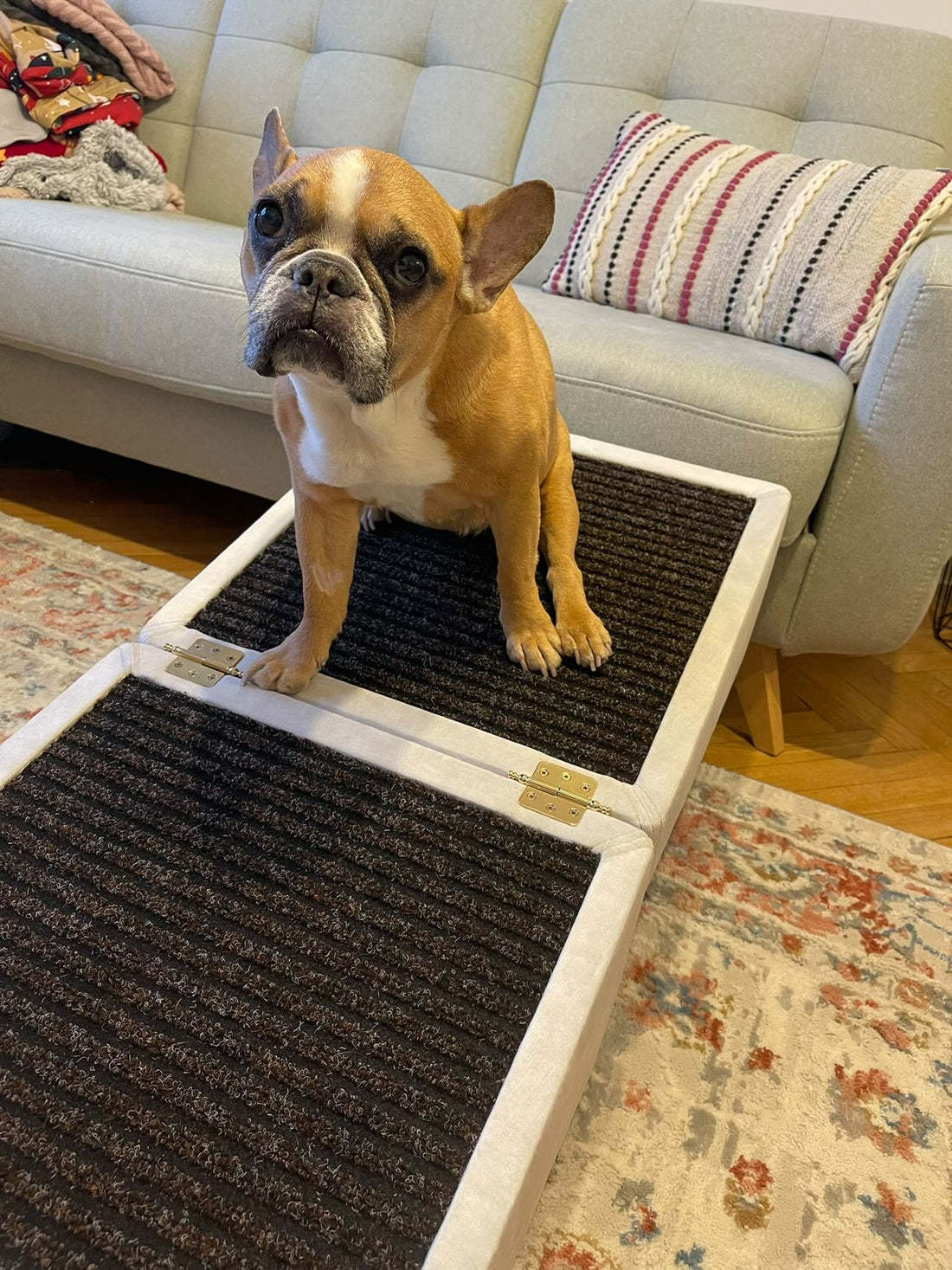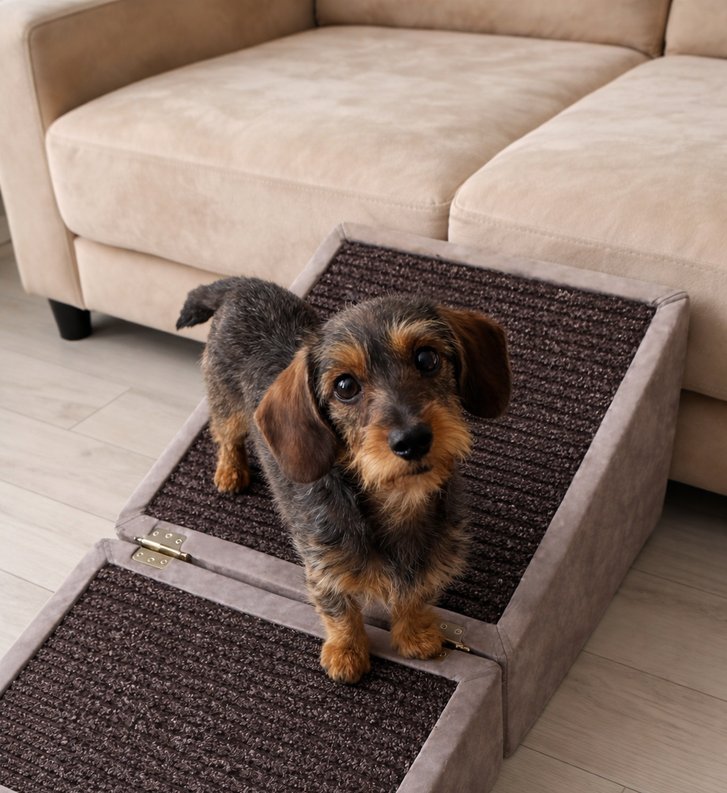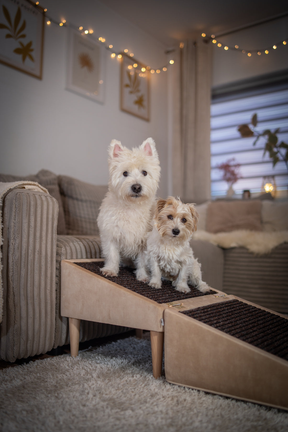 Z wiekiem chrząstki stawowe zużywają się, a kręgosłup traci elastyczność. Starsze psy często nadal chcą być blisko swoich opiekunów, nawet jeśli wejścia na kanapę zaczynają je boleć.
